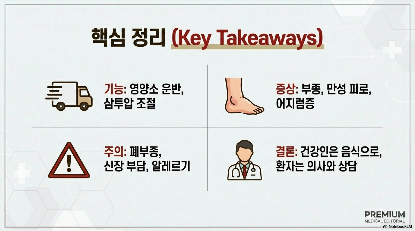 ✅ 부족하면 부종, 피로, 어지럼증, 상처 회복 지연 등의 증상이 나타날 수 있어요.