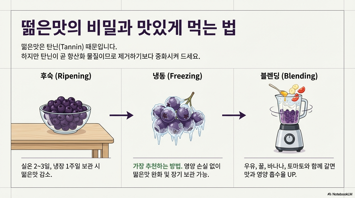 냉동실에 보관하면 계절과 상관없이 즐길 수 있고, 떫은맛도 완화돼요.