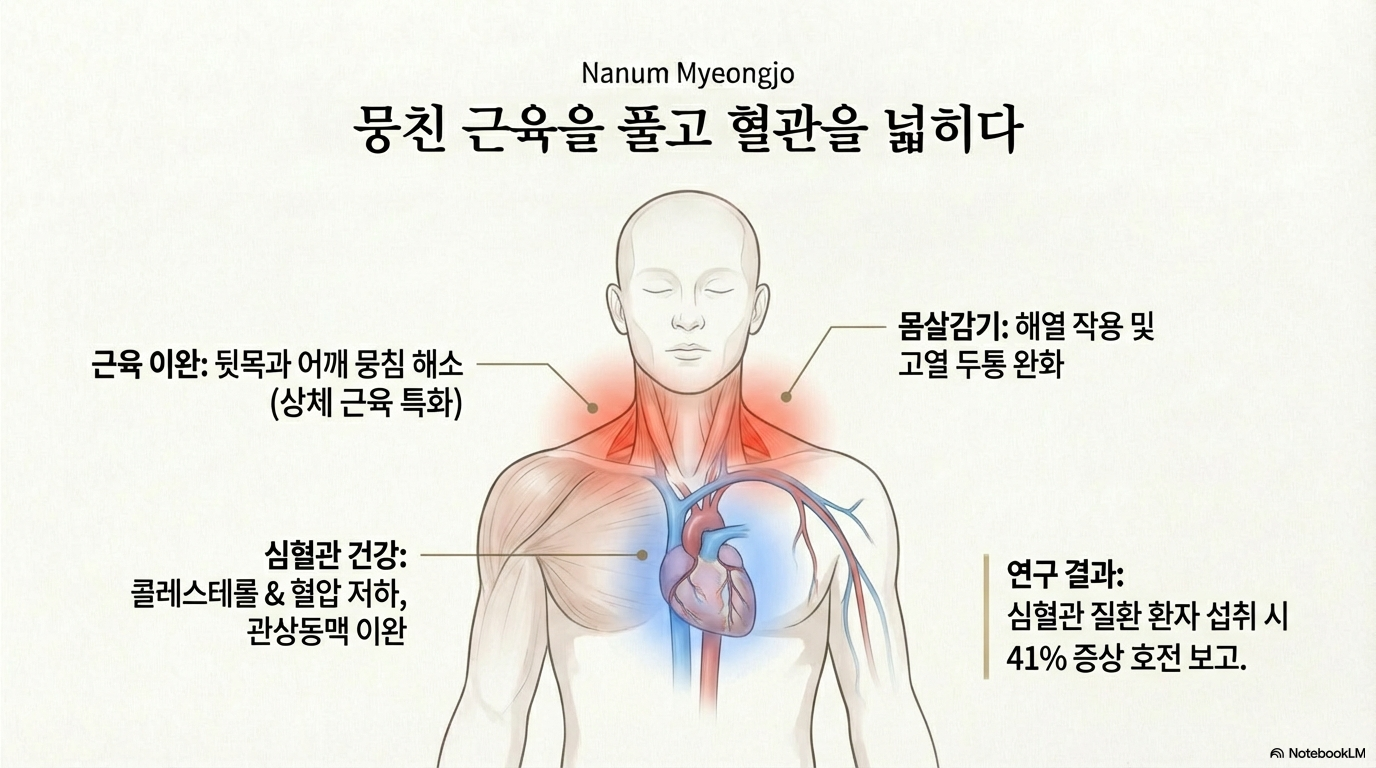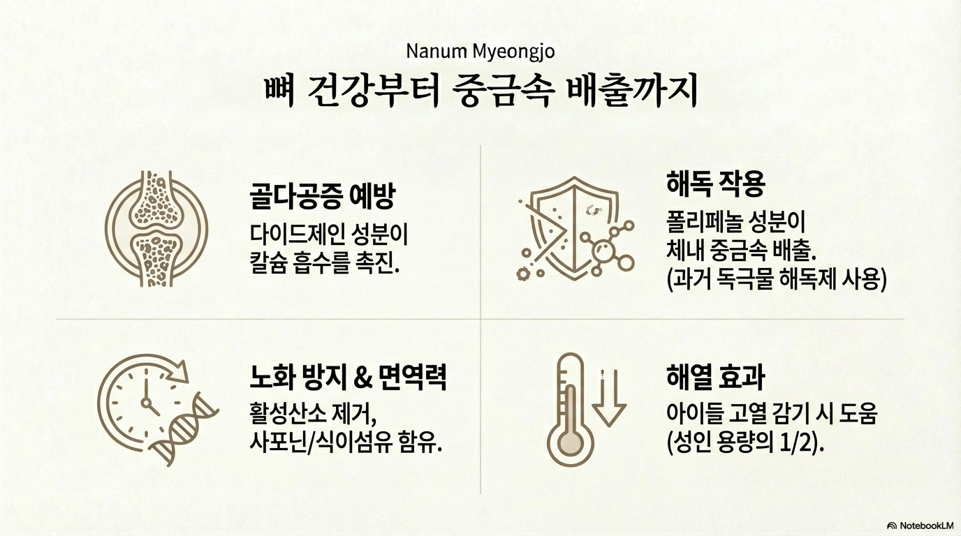✔️전통 의학의 관점: 동의보감에는 "풍한으로 머리가 아픈 것을 낫게 하며 땀이 나게 하여 피부를 풀어주고 땀구멍을 열어 준다"고 기록되어 있어요. 특히 고열, 두통과 함께 오는 몸살감기에 효과적이라고 해요.