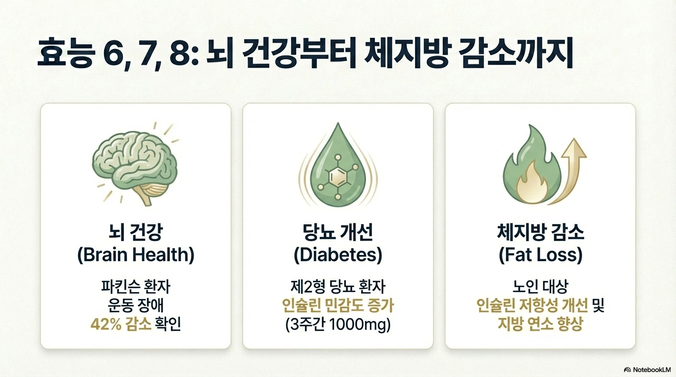 파킨슨 환자에게 글루타치온을 투여한 결과, 치료 종료 후 2-4개월 동안 증상이 개선되었으며 운동 장애가 42% 감소되었어요. 건강한 두뇌에서도 인지력 향상에 도움이 된다는 연구 결과가 있답니다.