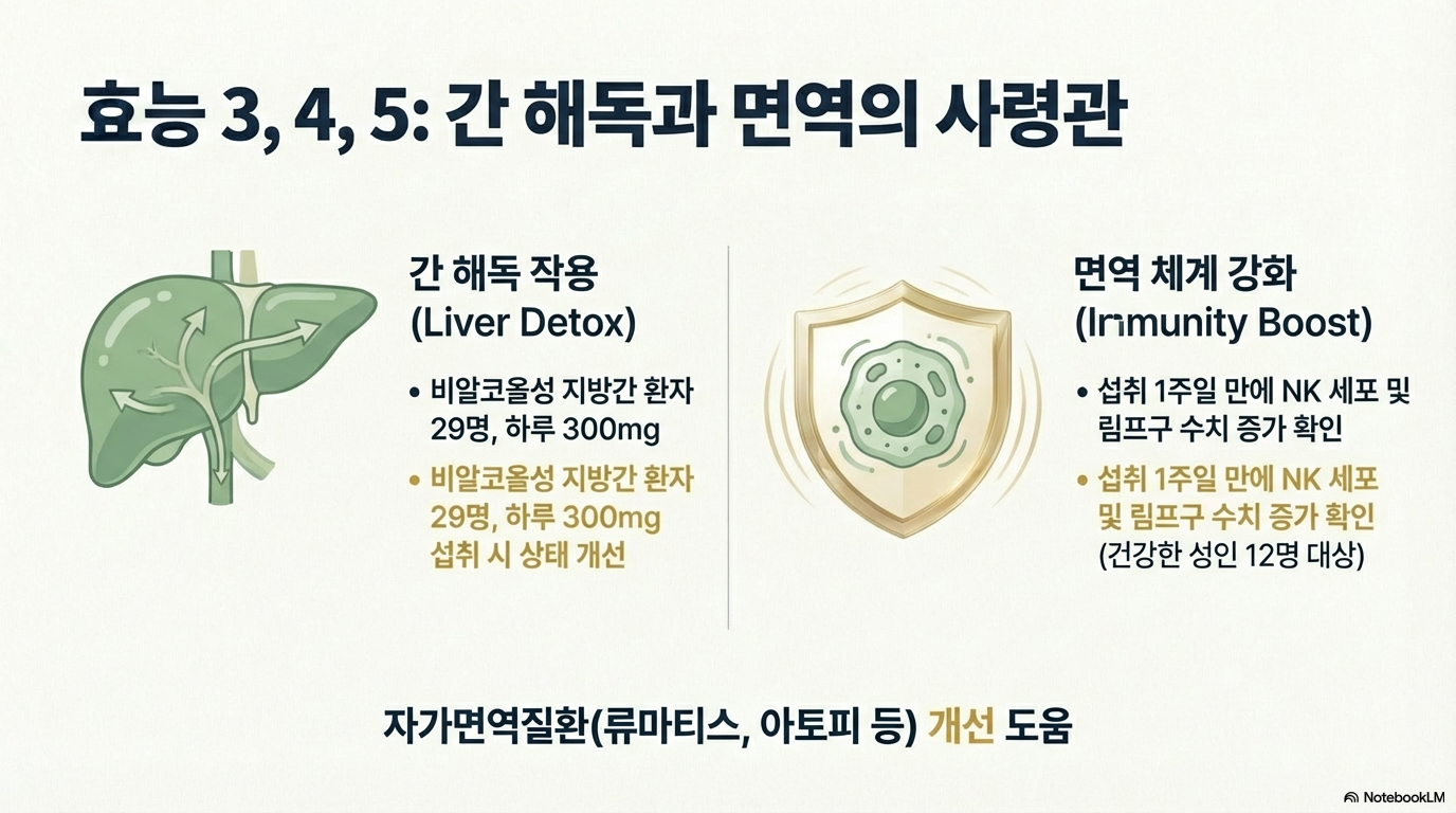 면역 세포가 손상되지 않도록 보호하며 균형을 맞추는 역할을 해요. T 세포와 자연킬러(NK) 세포를 지원해서 면역 체계를 강화한답니다.