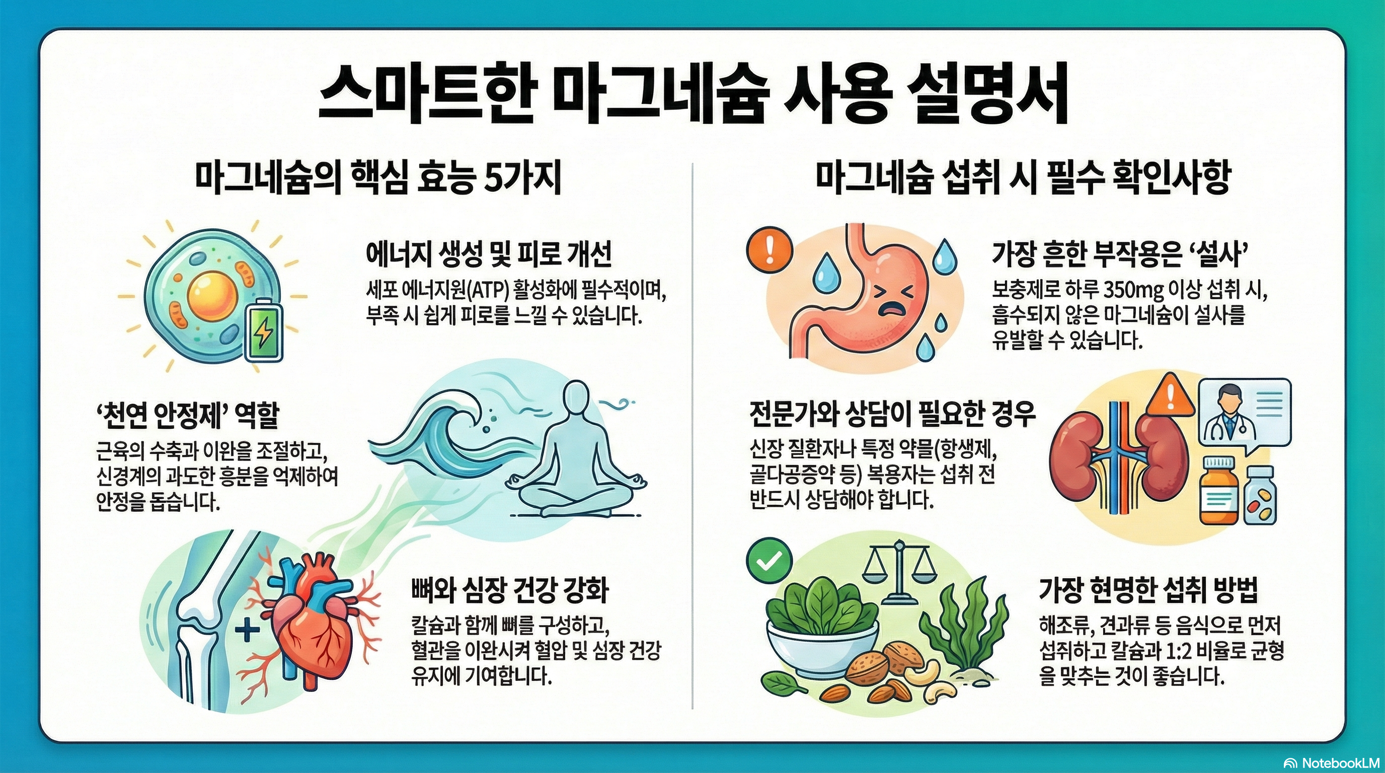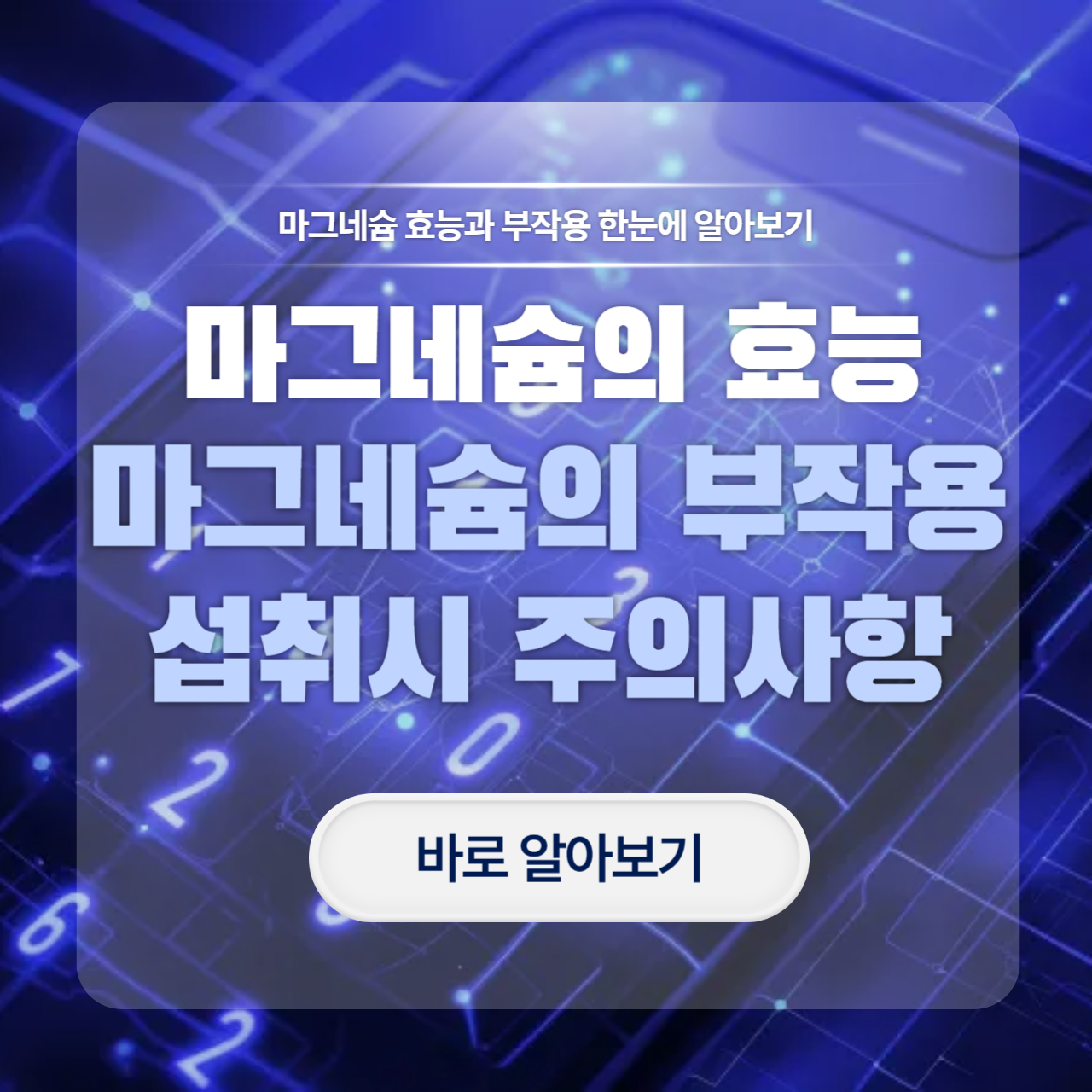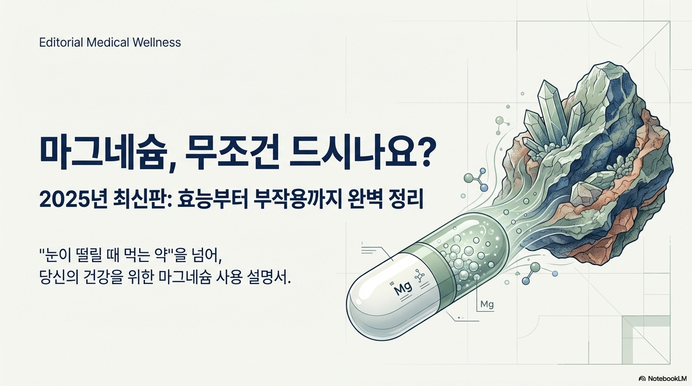 눈이 떨리거나 종아리에 쥐가 날 때 주변에서 "마그네슘 드세요"라는 말 많이 들어보셨죠? 요즘 마그네슘은 가장 인기 있는 영양제 중 하나인데요. 하지만 무조건 많이 먹는다고 좋은 건 아니에요. 지금부터 마그네슘의 효능과 함께 꼭 알아야 할 부작용까지 자세히 알려드릴게요.