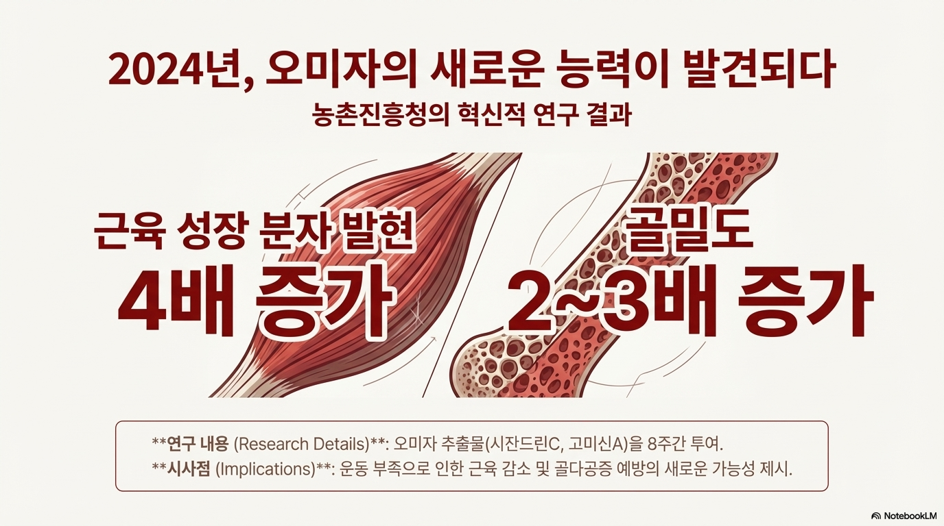 ✅ 특히 주목할 점: 농촌진흥청 연구에서 근육 성장 분자 발현 4배, 골밀도 2~3배 증가라는 획기적인 결과가 나왔어요!