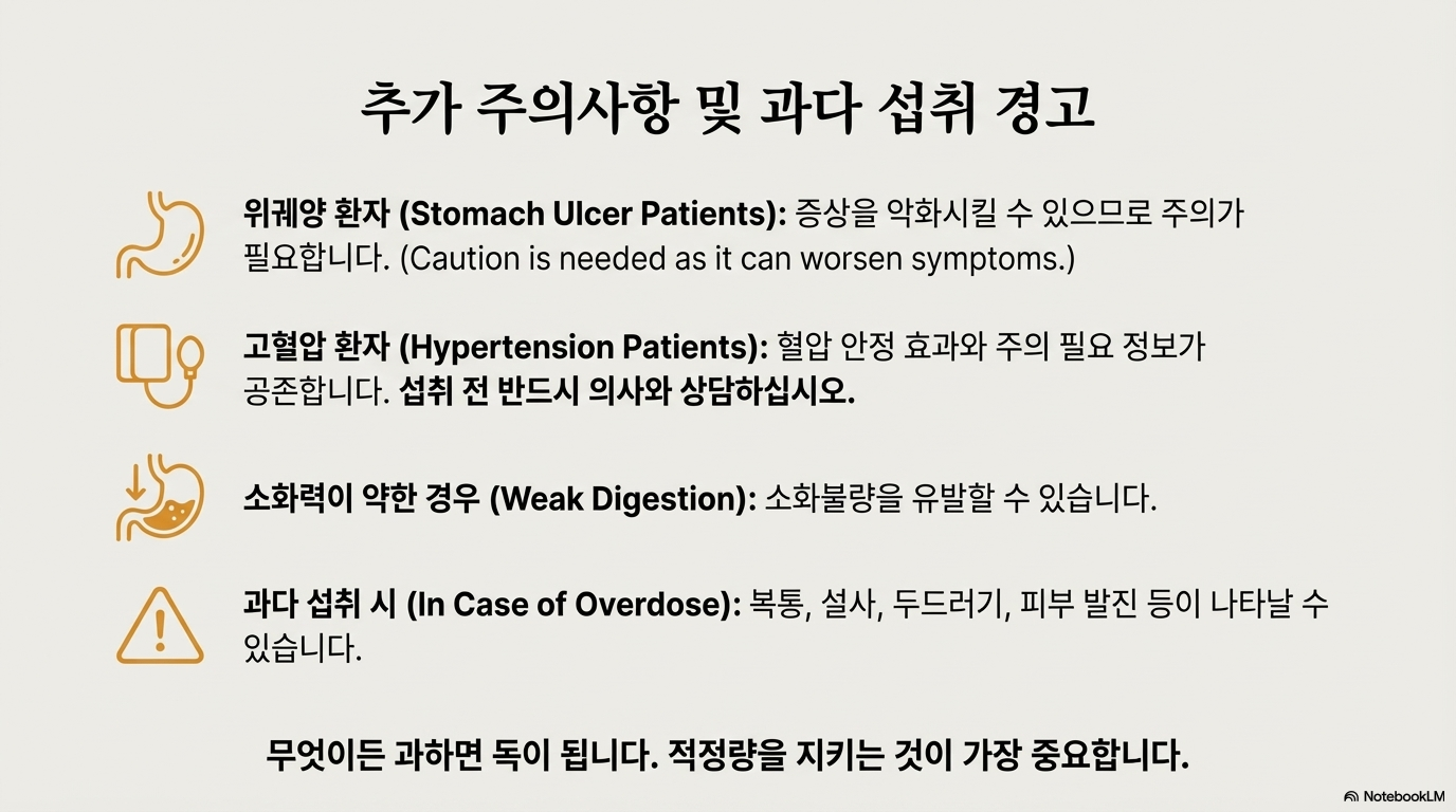 ✔️ 고혈압이 있으신가요? → 의사 상담 후 섭취